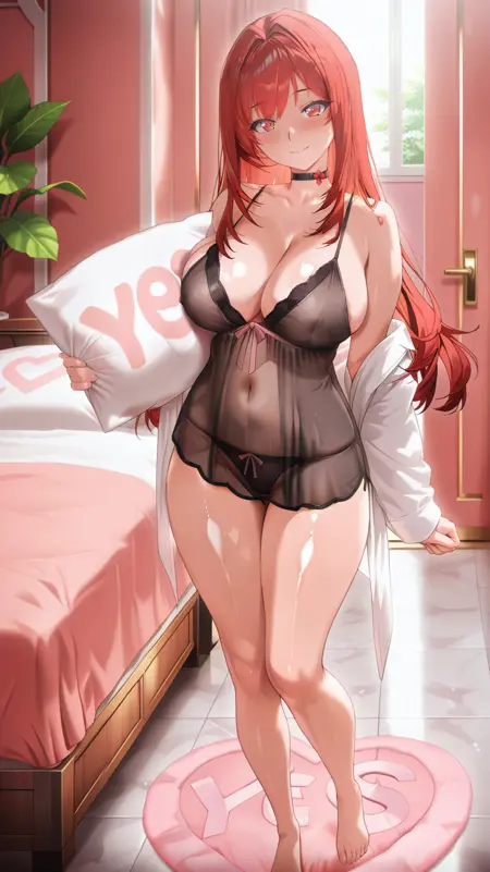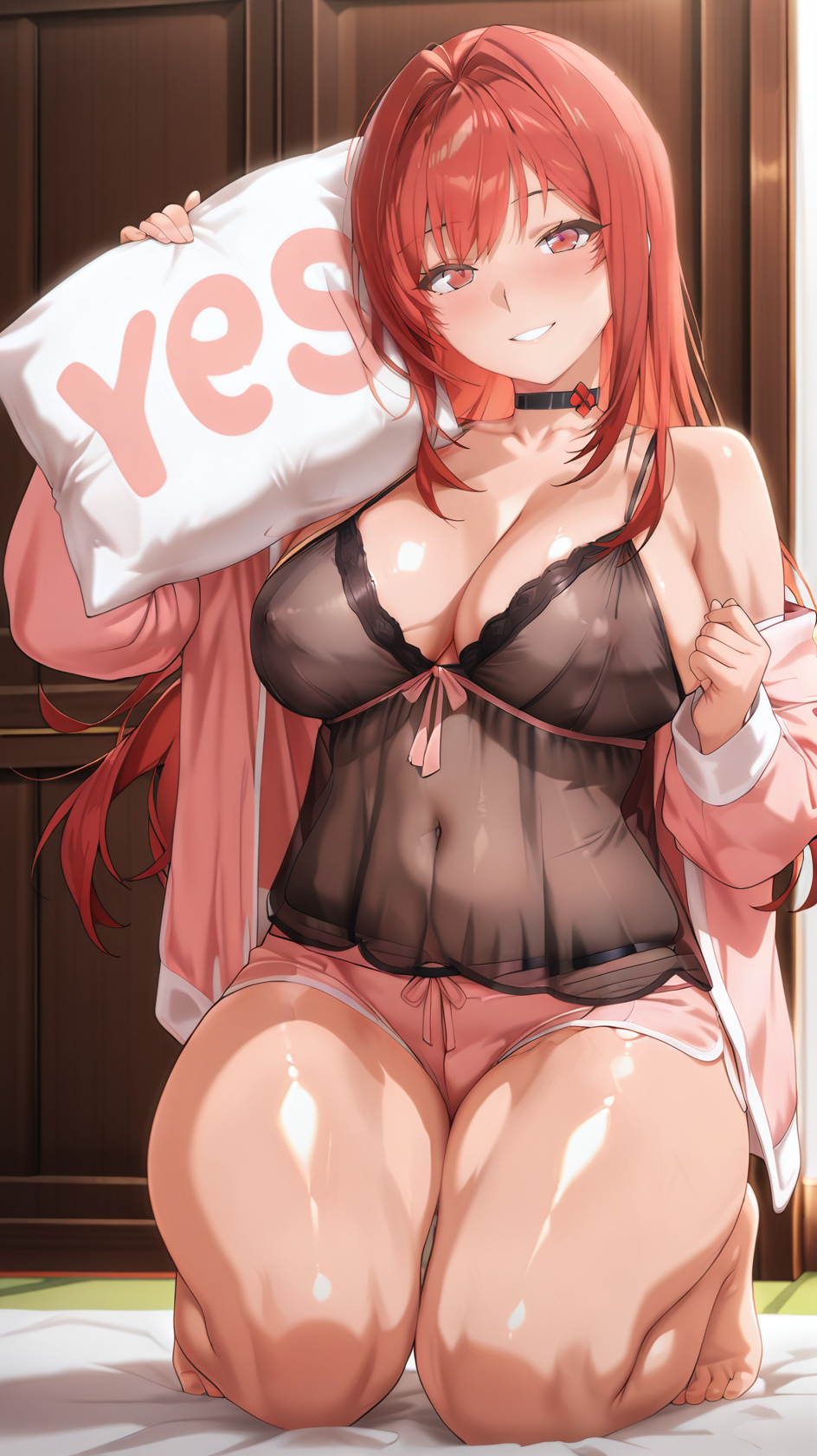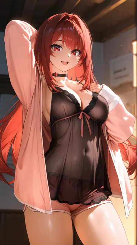 示例提示:长发,刘海,大乳房,红眼睛,红发,