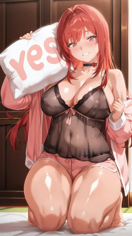 Example prompt : long hair, bangs, large breasts, red eyes, red hair,