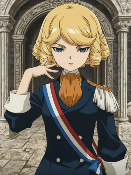 1girl, francois, blonde hair, blue eyes, short hair, uniform, <lora:Francois:0.85>,