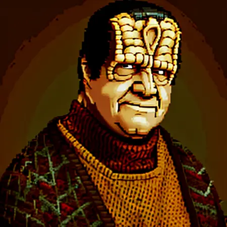 Enabran 的服装:棕色与绿色开襟毛衣,配棕色背心和黄色高领衫