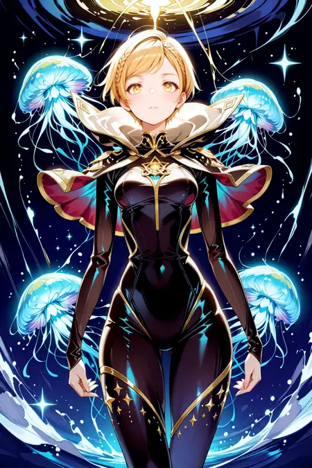 《哦,星辰,你们送来了什么?》是一个经过独特图像混合训练的LoRA,能够为你的生成作品注入一种俗艳的科幻与阴郁的黑暗奇幻相结合的风格。除了这些类型外,你还会发现大量多余的LEDHUD、高概念光线、类似虚假光环的装饰,以及明亮却令人不安的背光。最后,你或许还能看到塔罗牌设计的痕迹,以及偶尔出现的宇宙访客。