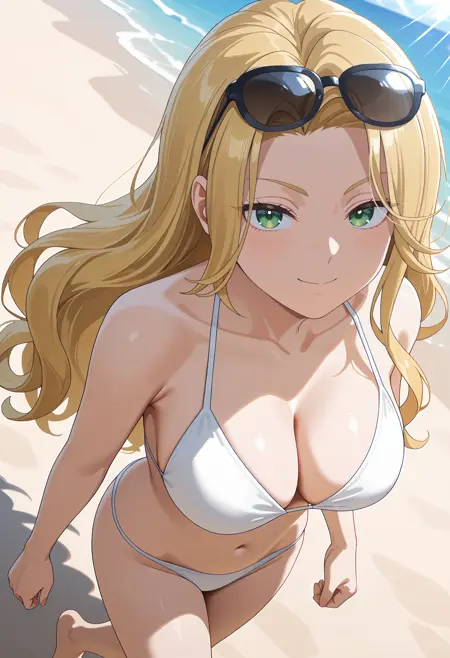 AmekimiMimi、绿色眼睛、金色头发、长发、帘式头发、不对称侧发、无框眼镜