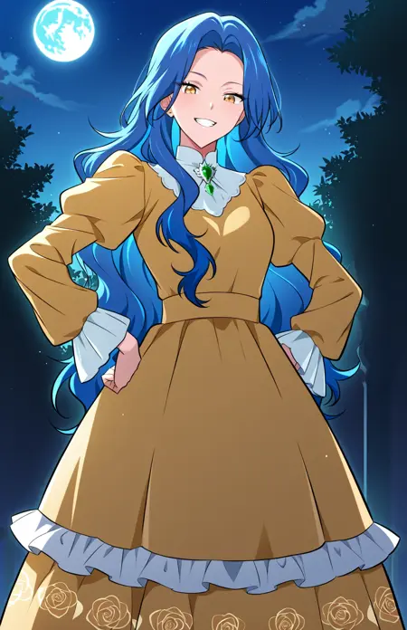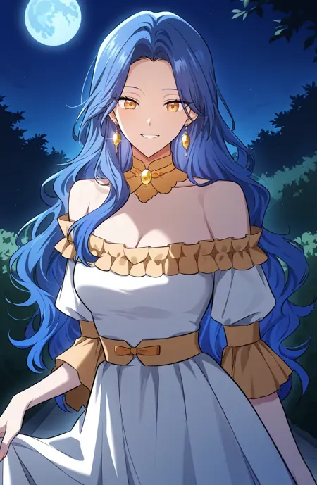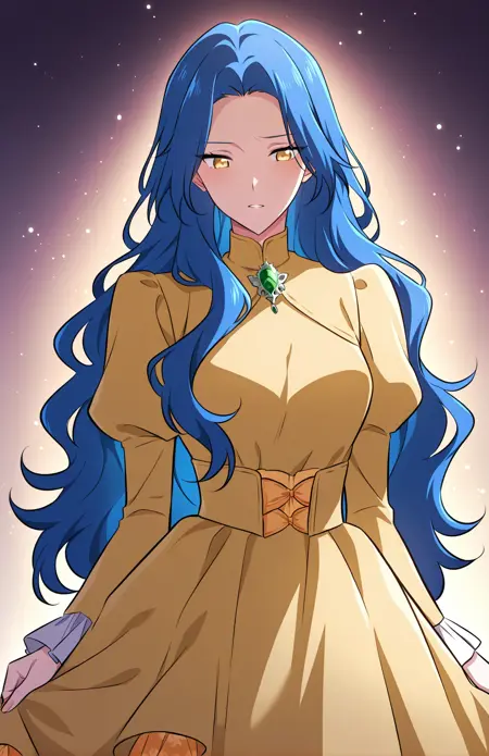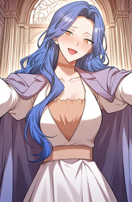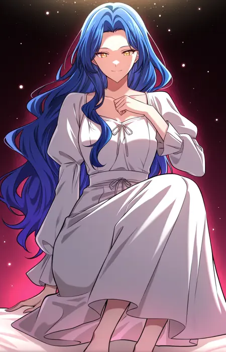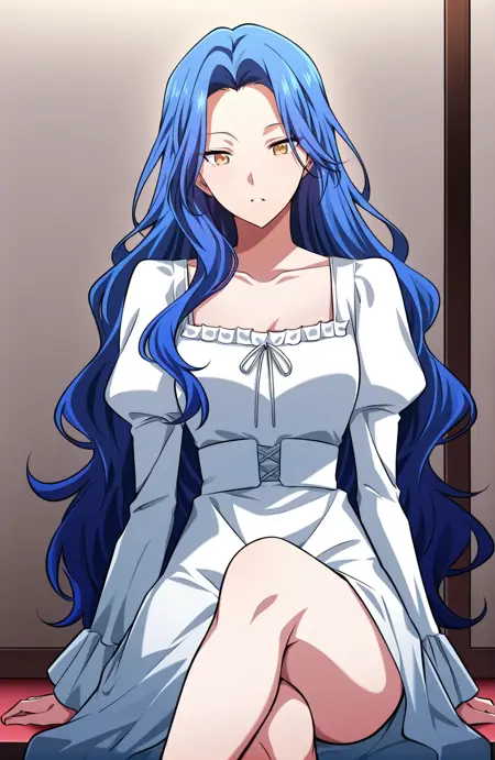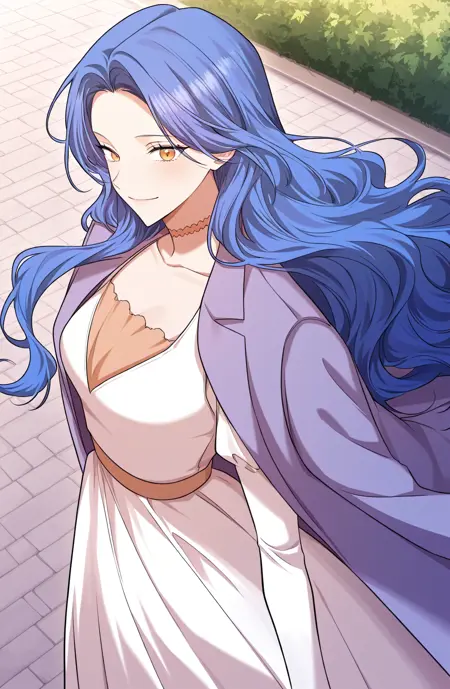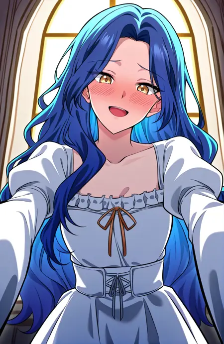 | 학습된 단어 | Reina, 1 girl, solo, blue hair, long hair, wavy hair, center part, golden eyes,복사됨! Reina_outfit1, off-shoulder white dress, frilled neckline, puff sleeves, mid-sleeve ribbons, waist sash, separate gold collar, gemstone collar, long earrings, high heels, cleavage,복사됨! Reina_outfit2, lavender blazer, blazer draped over shoulders, white long dress, chest frills, collarbone, tight waist belt, fitted sleeves, long skirt, ruffled choker, high heels복사됨! Reina_outfit3, golden dress, puff sleeves, ruffled cuffs, ruffled hem, floral patterned skirt, high collar, green gem brooch, formal dress복사됨! Reina_outfit4, white dress, long sleeves, puff sleeves, sleeve frills, v-neckline, drawstring neckline, high waist, long skirt, barefoot복사됨! |