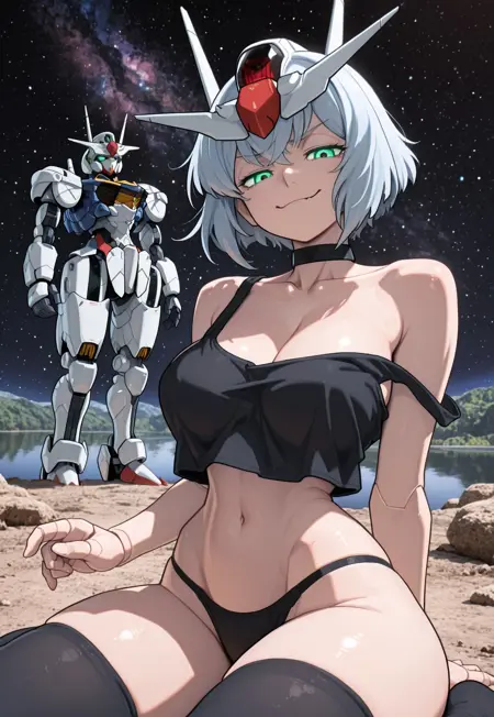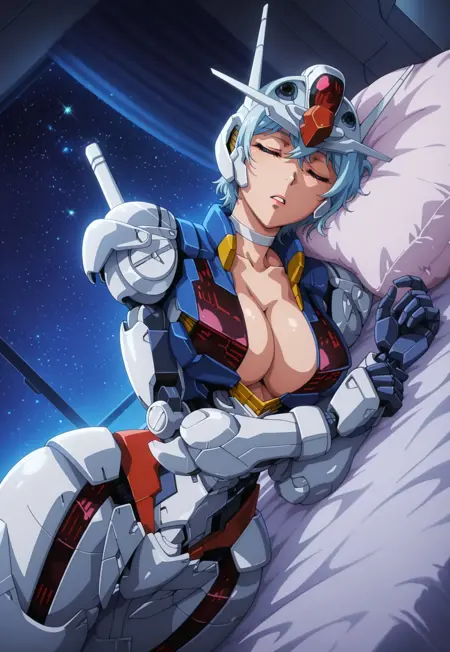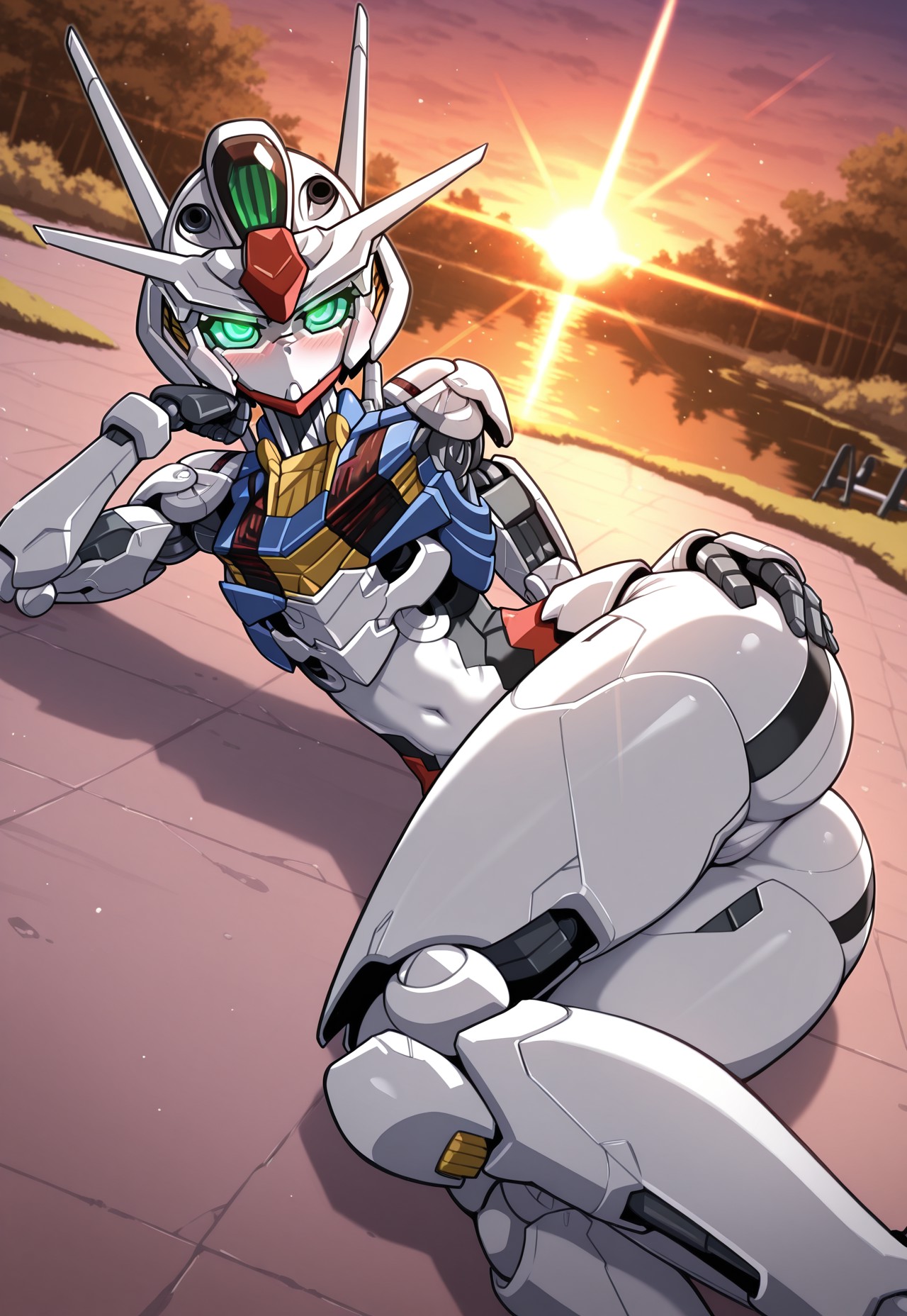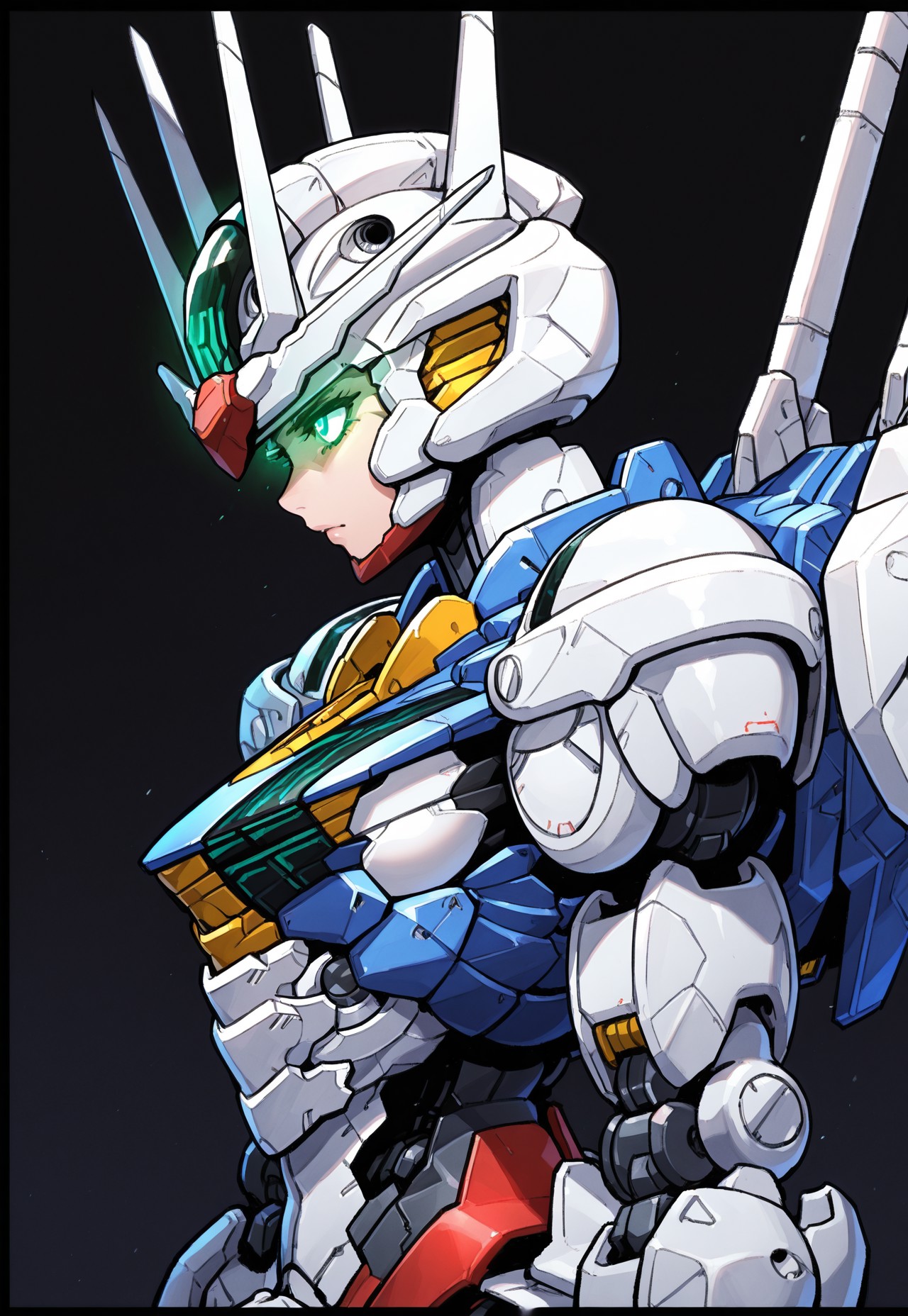 gundam_aerial, gundam, v-fin, mech, mecha, mecha girl, green eyes, mechanical joints,