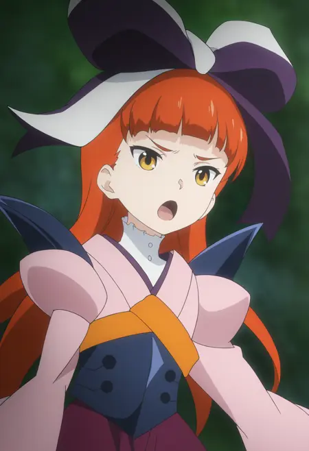 IL_Ann, 1girl, ソロ, オレンジ色の髪, ポニーテール, 長い髪, 黄色い目, ほくろ, 目の下のほくろ