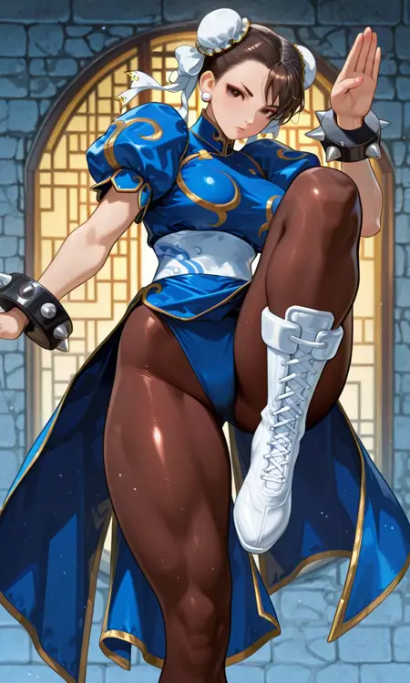 基本ワード:chun li, capcom, st2、筋肉質で肉体的、太ももが太い、筋肉がはっきりしている、中国系の特徴