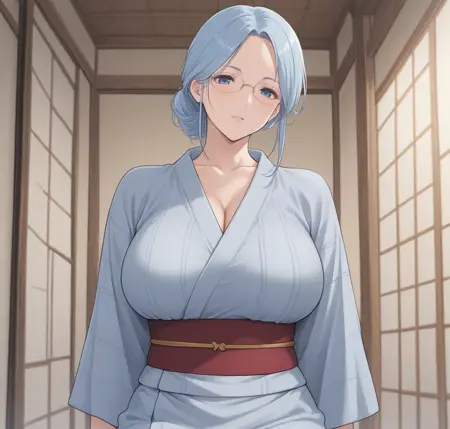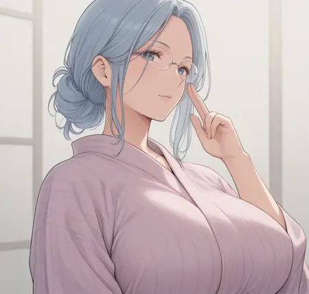 sanako,light blue hair,glasses,,mature female,large breasts,forehead