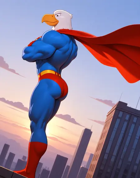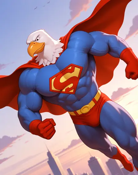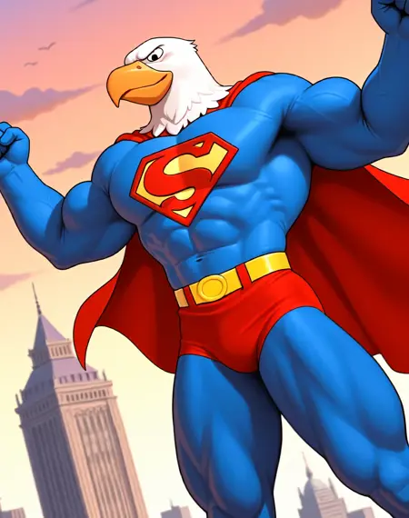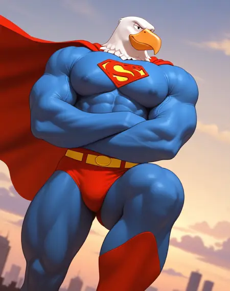 このLoRA用のプロンプトは以下の通りです:(Superman Warpland, muscular, eagle, )