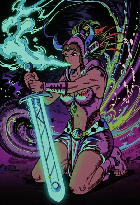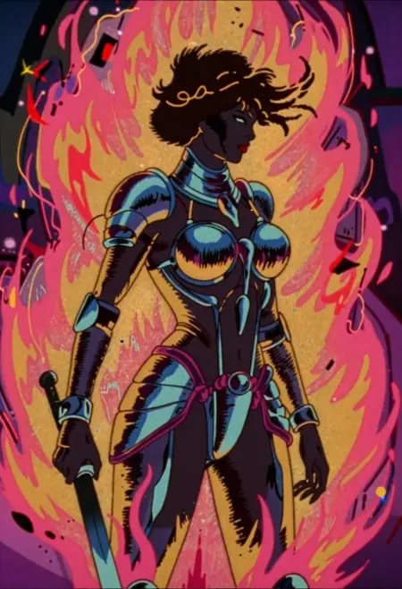 Heavy Metalで使われている人気のあるアニメーションスタイルに基づいています。リアリスティックなモデルを使用する場合は、重みを1.2に増やす必要があるかもしれません。フラットアートや2Dフラットアートのようなタグを使うのも役立ちます。初めて試みたので、優しくしてください。
