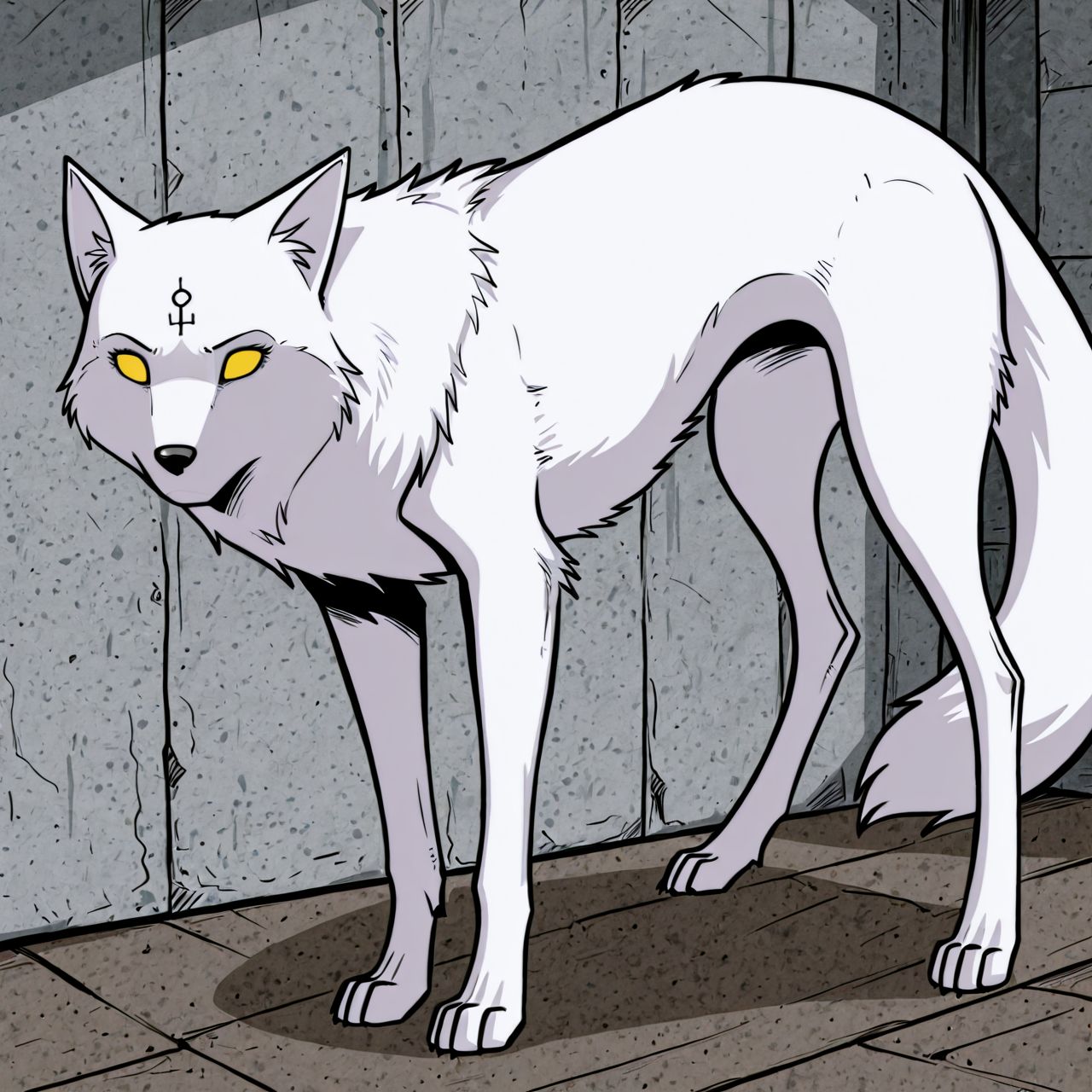 (renard_wolf:1.5),狼,犬科,白色身体,黄色眼睛,额头斑纹,白色毛发,(无嘴,无瞳孔:1.3)