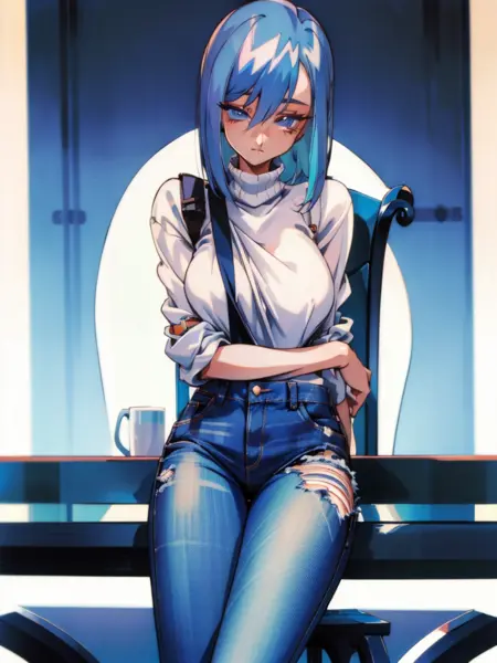 Saki:saki,蓝发,蓝眼睛——然后是“长发,马尾”或“短发”