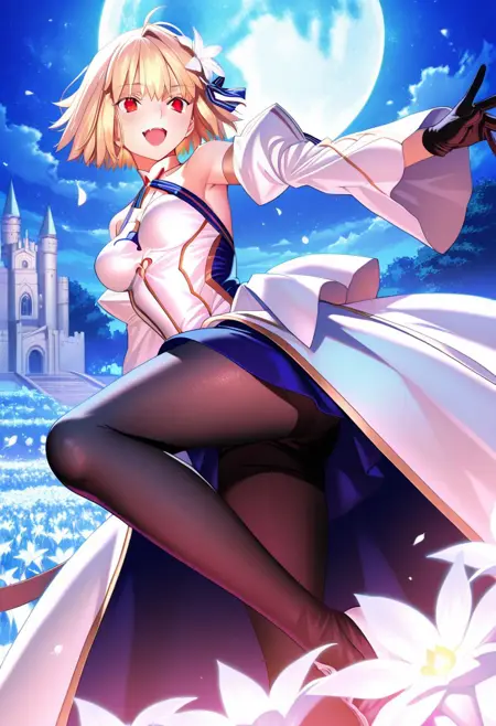 第3套:1girl,arcuied,blonde hair, red eyes, short hair,short dress, hair flower, ribbon, detached sleeves, black gloves, waist cape, black pantyhose,