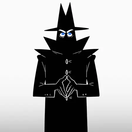 faker, black silhouette, blue eyes, white eyebrows, white mouth, Silhouette, simple body, hat, shoes