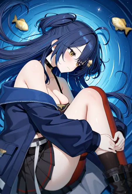 주요 프롬프트: yakirisu, 노란 눈, 파란 머리, 양측 위로, 물고기 모양 머리 장식