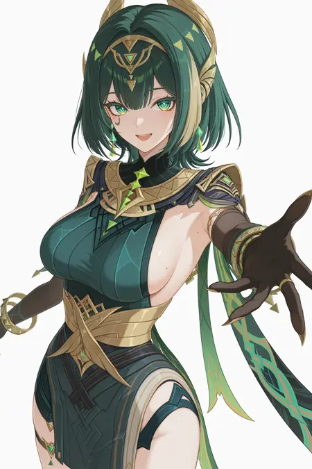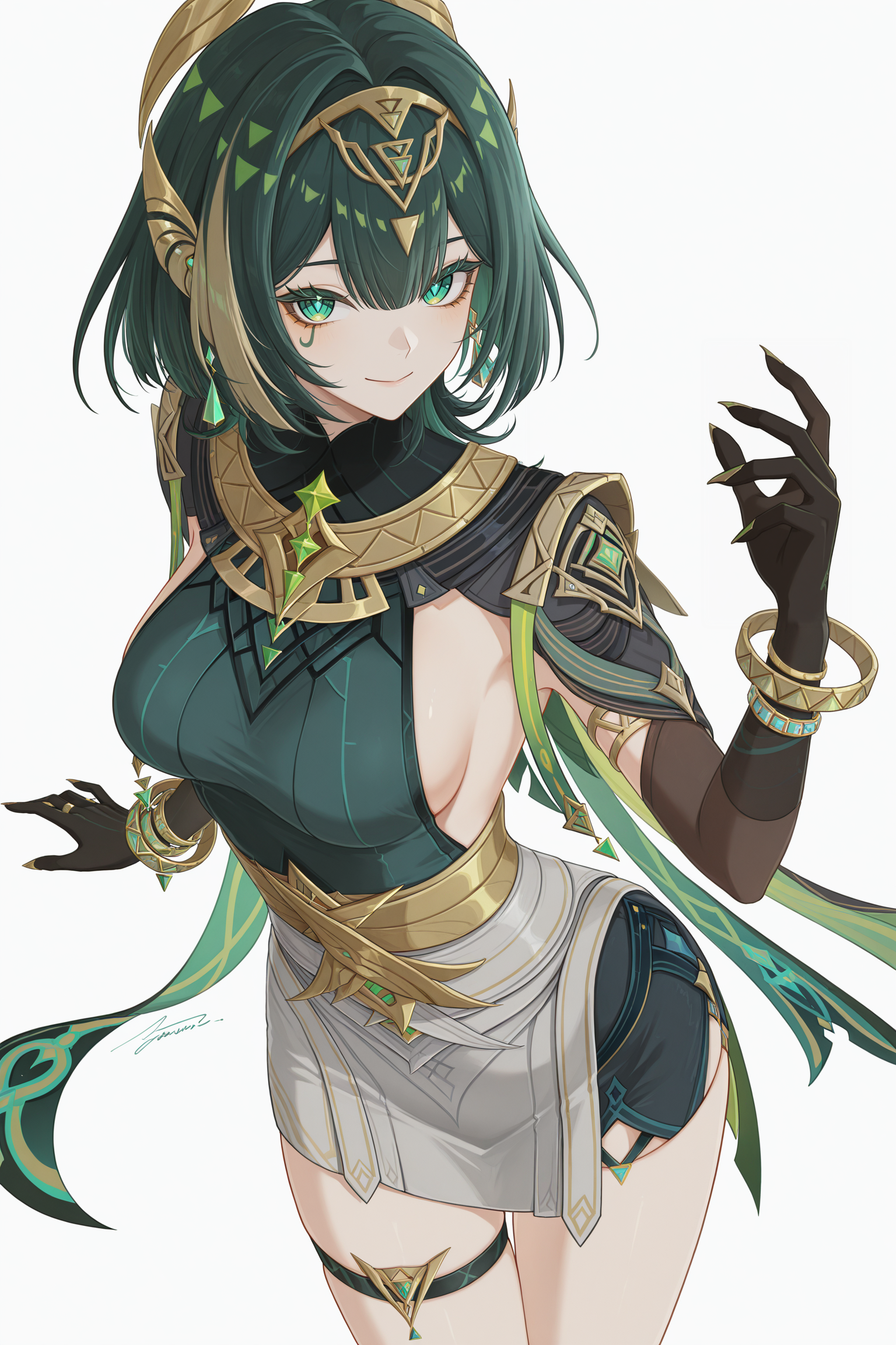 这次的角色是《原神》的角色-奈芙尔。相较于之前的版本,这次训练集使用了3D模型进行训练,有更高的准确度,理论上说,仅通过触发词可以还原人物形象,但是可能会因为颜色相关的tag影响人物特征,可以使用下方tag来保证人物还原度: