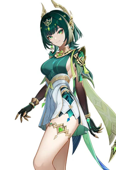 这次的角色是《原神》的角色-奈芙尔。相较于之前的版本,这次训练集使用了3D模型进行训练,有更高的准确度,理论上说,仅通过触发词可以还原人物形象,但是可能会因为颜色相关的tag影响人物特征,可以使用下方tag来保证人物还原度: