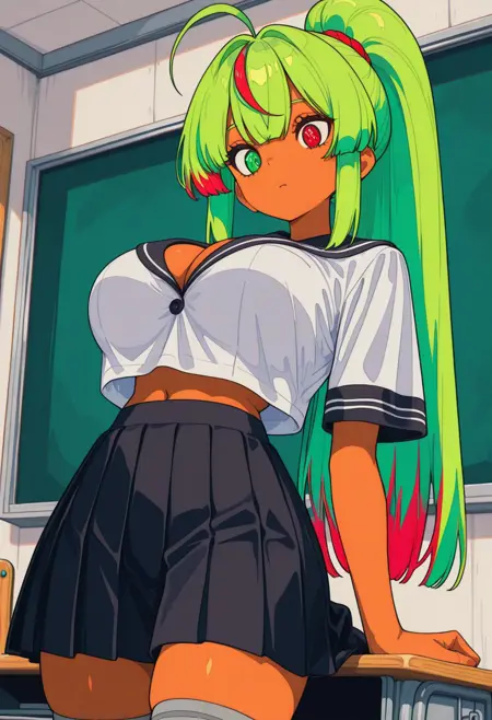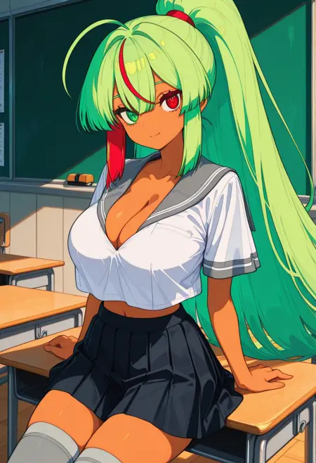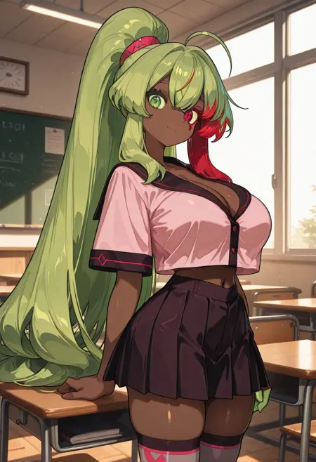 Long green hair