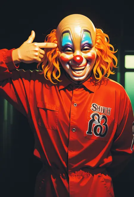 ショーン・クラハンマスクには:sh4wncr4h4n、mask、clown、orange hair、bald、red nose、smile を使用。