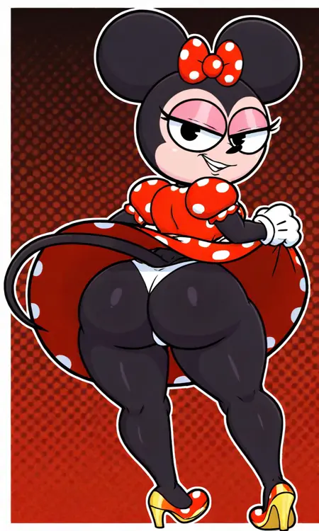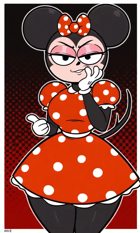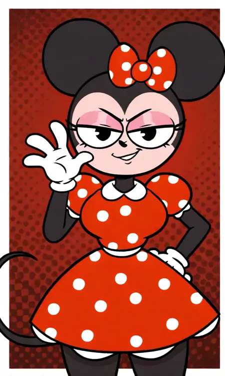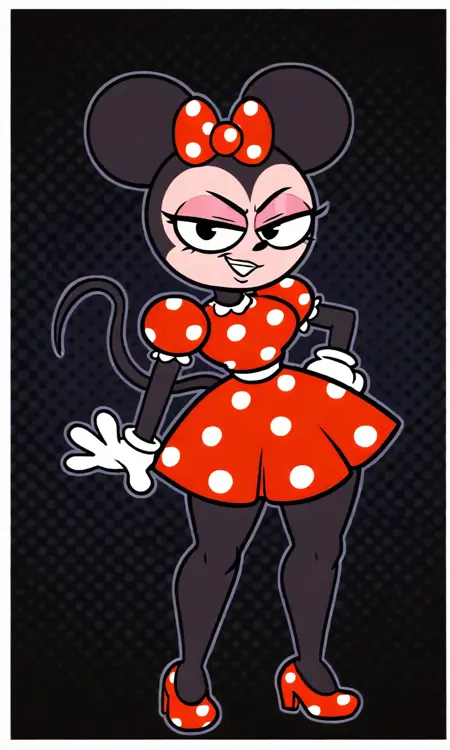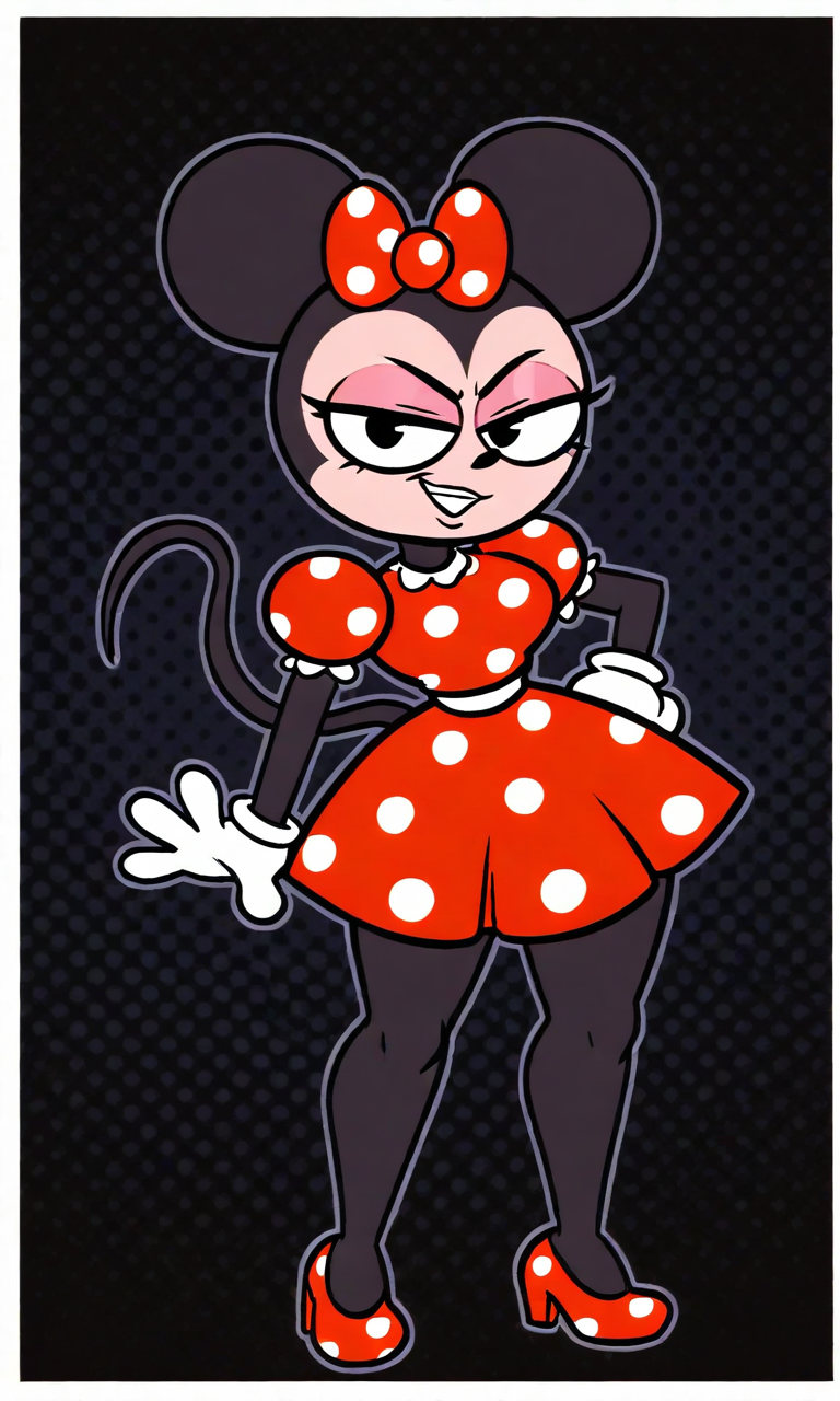 태그: MinnieGB, 검은 털, 헤어 리본, 장갑, 노랑 신발, 쥐 꼬리, 검은 귀, 검은 눈, 빨간 드레스
