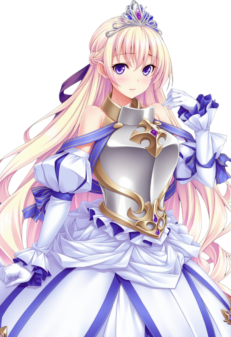 의상: 티아라, 갑옷 드레스, 가슴갑옷, 분리형 소매, 긴 드레스, 풍성한 소매, 흰 장갑,