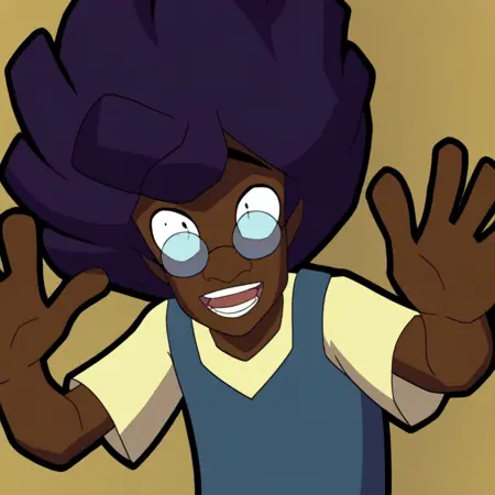 Gabriel N'duala, solo, dark skin, 1boy, blue eyes, dark-skinned male, purple hair, male focus, dark-skinned male, glasses, dreadlocks, long hair,
