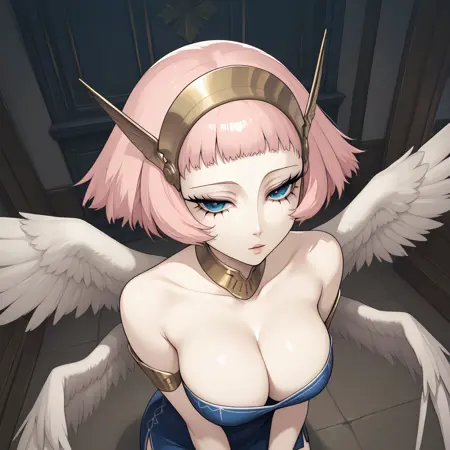 rellamrf가 트리거 단어이다. 그녀의 기본 외모는 분홍색 머리, 짧은 앞머리, 짧은 헤어스타일, 파란 눈, 속눈썹, 날개로 구성되어 있다.