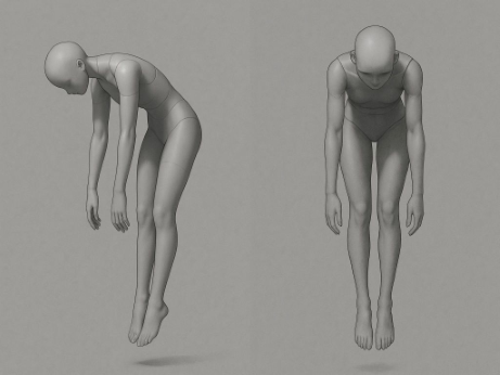 bentstand-behind, dangling legs, dangling arms, front view측면 뷰: