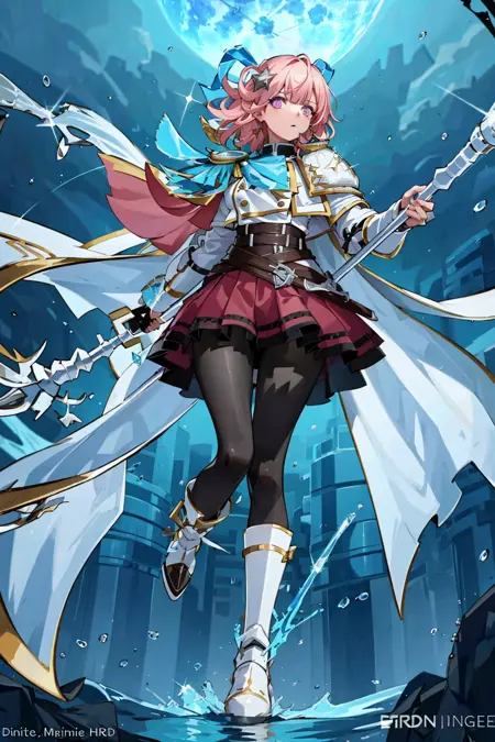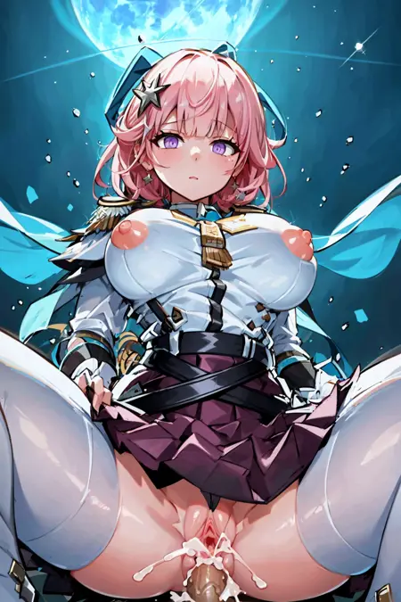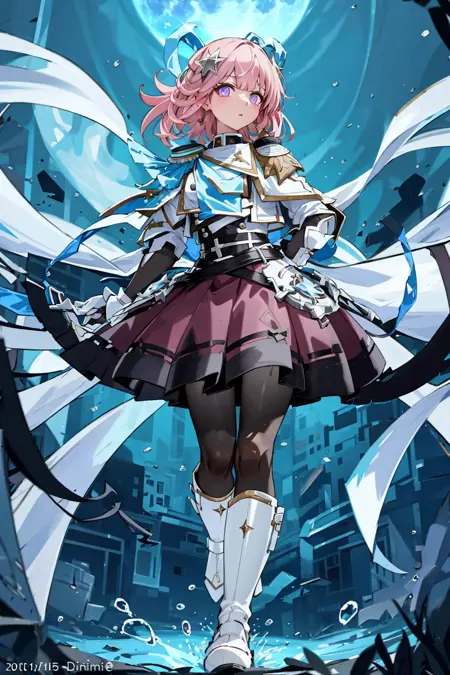 紫の目、ピンクの髪、短髪、星の髪飾り、カスピテルヘアリボン、水の髪リボン、発光、