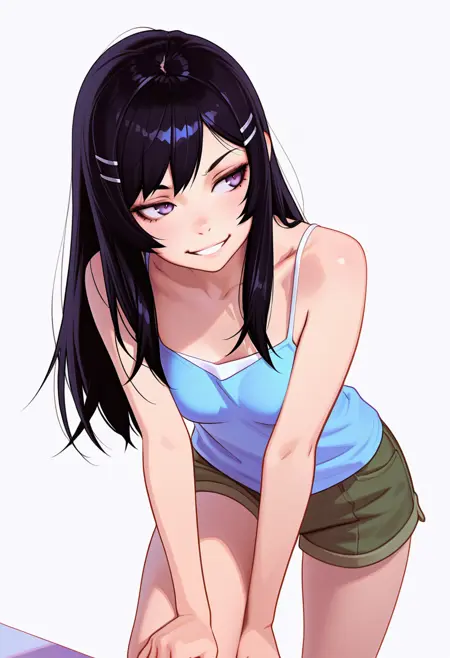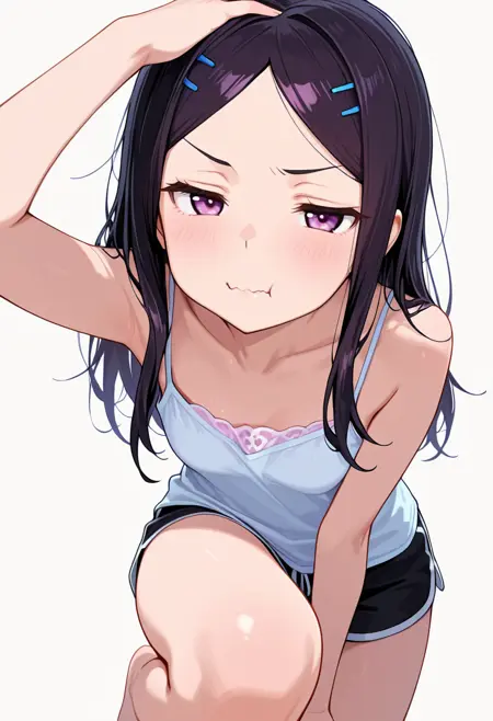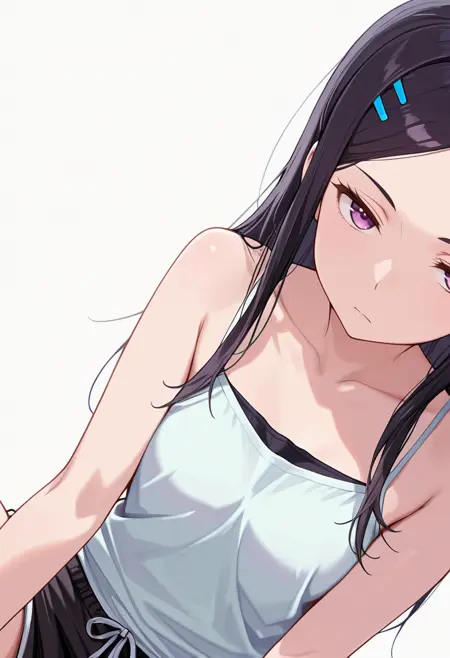 collarbone, bare shoulders,tank top, camisole, shorts,
