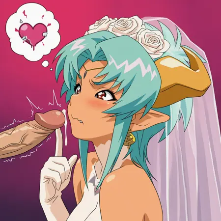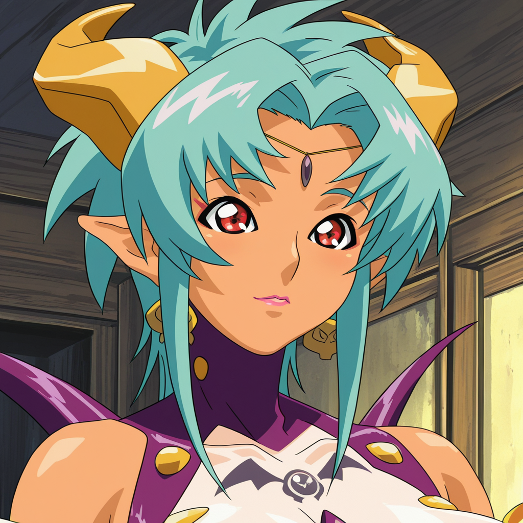 옷: 컵 없는 크롭탑, 패스티, 팔꿈치 장갑, 허벅지 부츠, 속옷, 악마 날개,
