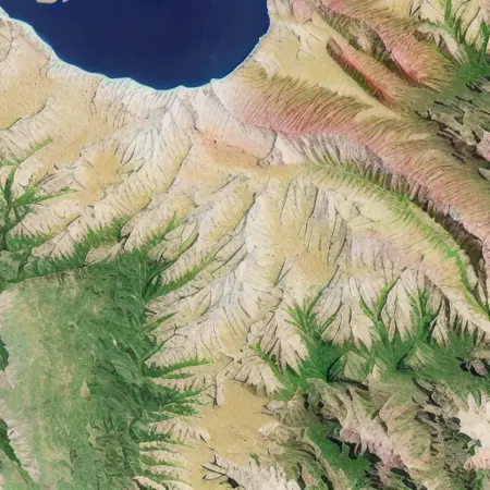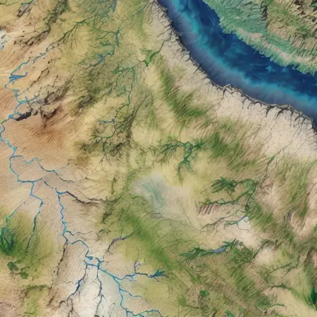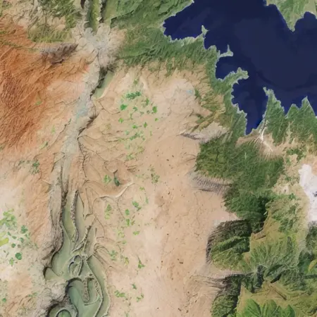 "satellite image of oeax location, mapsatimageeu, (gamelandscapeheightmap512:0.5), cost, ((ocean)), mesa, hills, rivers,"