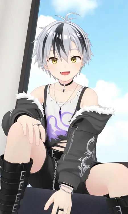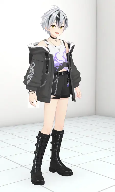 | 训练词汇 | 1boy, 3d, black belt, yellow eyes, black streaks, black coat, black shorts, black boots, black choker, fur-trimmed coat, white hair, hair between eyes, hooded coat, jewelry, knee boots, lace-up boots, long sleeves, multicolored hair, necklace, open coat, short hair, streaked hair, pendant choker, black ring, bracelet, torn multicolored tank top, chain, off shoulder, fang, black crop top undershirt已复制! |