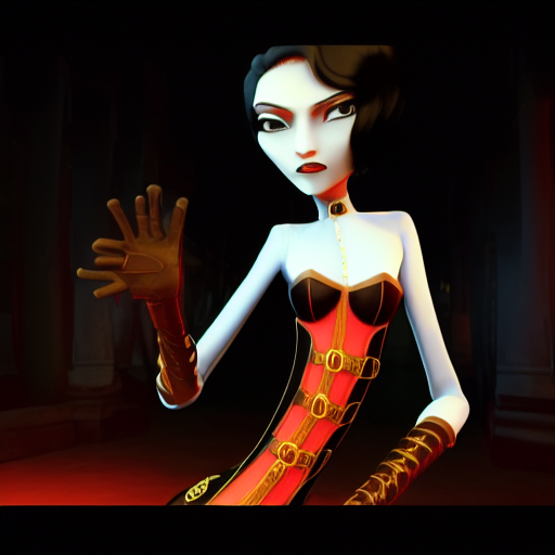 shianax_girl, short black hair, yellow eyes, white and red corset dress, leather gloves, 3d style,