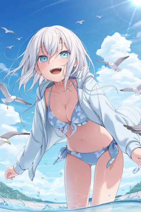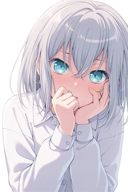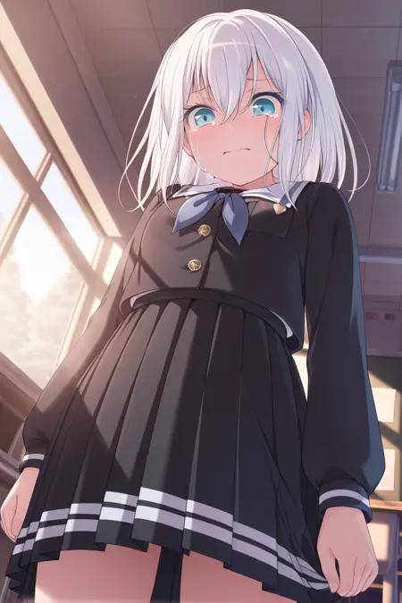 kuratamashiro, 1girl, solo, skirt, school uniform, pleated skirt, looking at viewer, serafuku, neckerchief, blue eyes, long sleeves, sailor collar, hair between eyes, blush, blue hair, bangs, tsukinomori school uniform