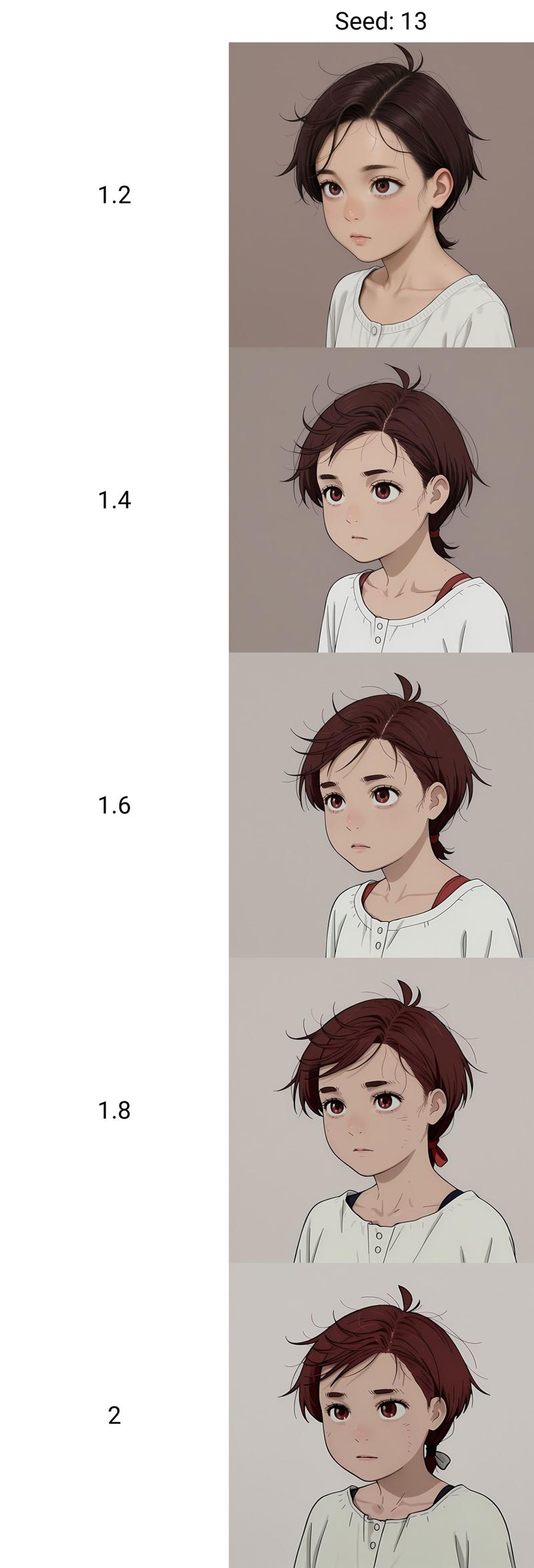 このLoRAは、「ダンダダン」と「7王子として転生したので、魔法の力をじっくり磨くことにします」のダイナミックなアートスタイルを融合させています。重み1.4が理想的な混合です。0.8以上で顕著な変化が見られ、2.0以上では過剰です。重みの効果については、画像内のX/Yプロットをご覧ください。