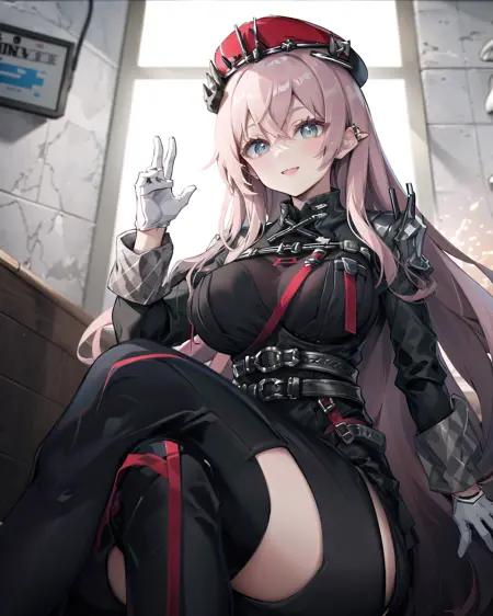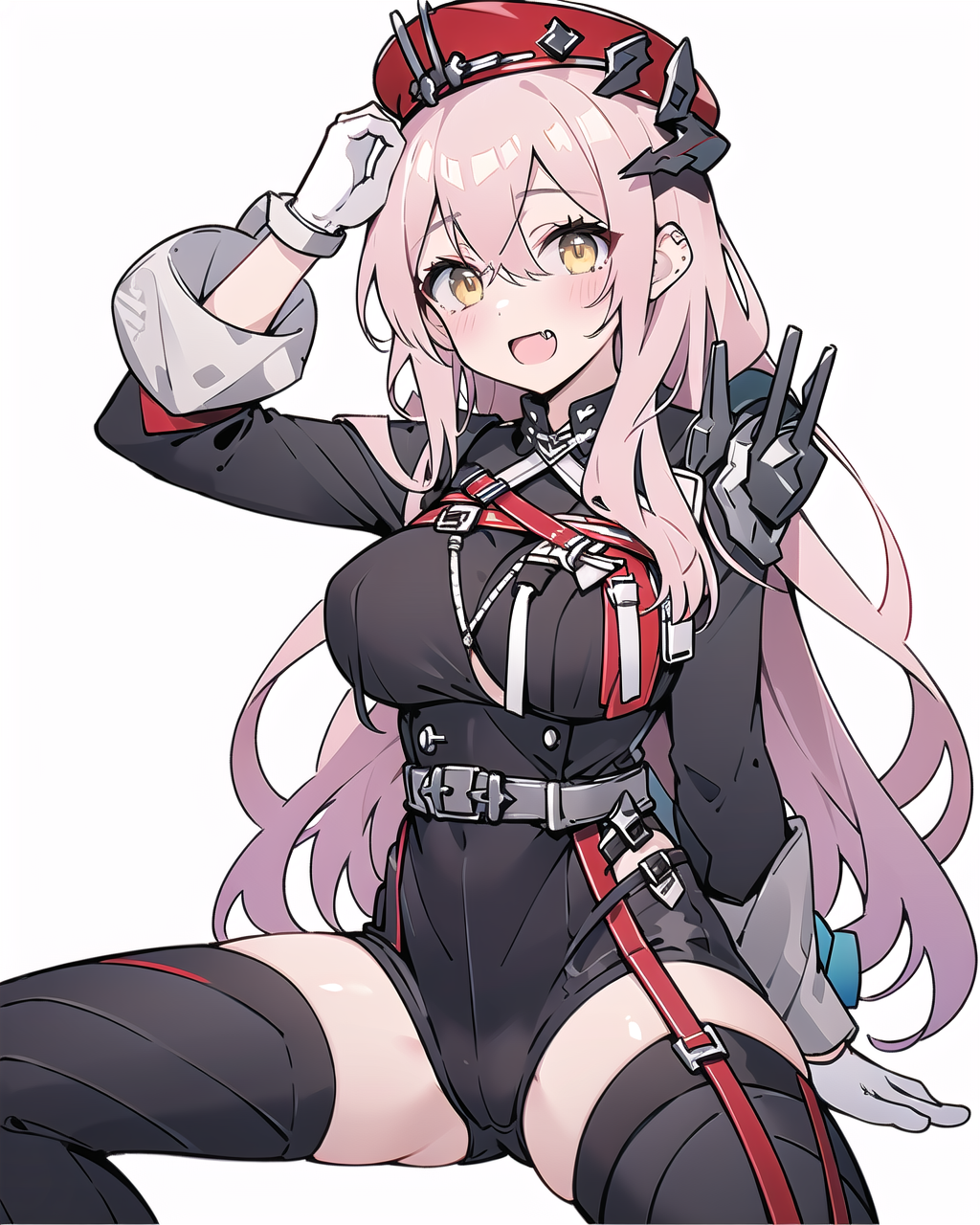 2.OG: origin、白い手袋、ベレー帽、ブラックの thighhighs;