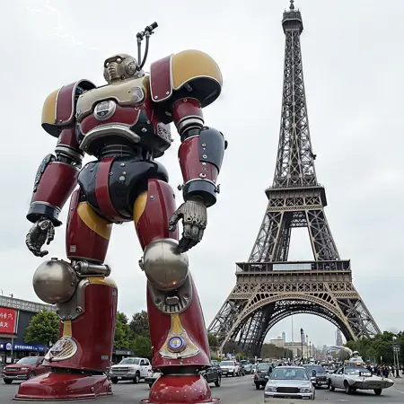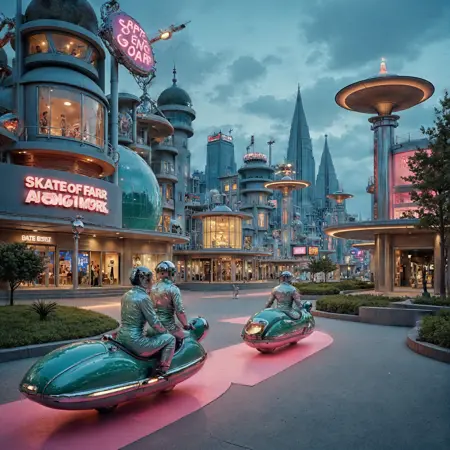 一个用于增强复古未来主义图像的LoRA,适用于建筑物、车辆和人物,并配合调整后的提示词。
