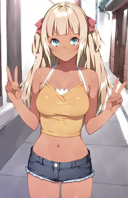 『Kasshoku Danchi e Youkoso ♪』のRikko Sujata用LoRA。推奨重み:0.9。トリガー語:RikkoSujata。クラシックな衣装用プロンプト:シャツ、へそ、青いネクタイ、ショートパンツ、肘まで手袋、短いショートパンツ、赤いショートパンツ。NSFW向けネガティブプロンプト:センサー処理済み。