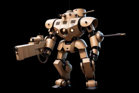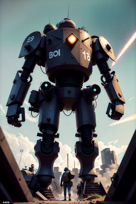 ((全身镜头)) 一个巨型机甲机器人,art by WAS-Dieselpunk,手部精细,最佳手部,4k,高分辨率,杰作,顶级质量