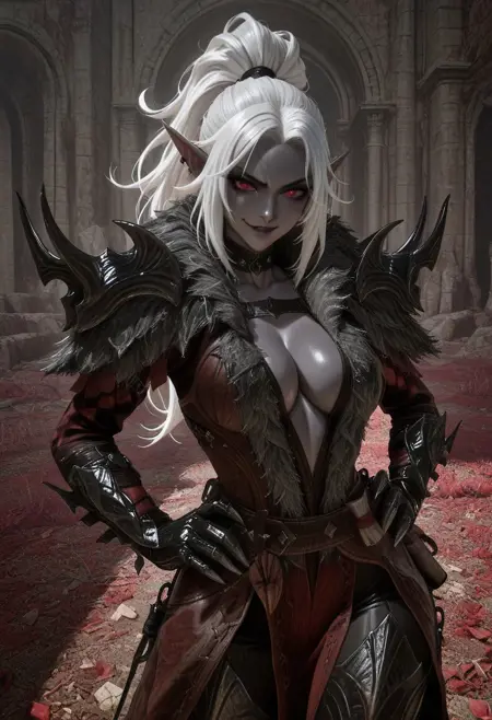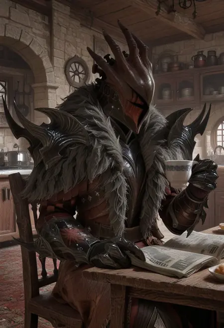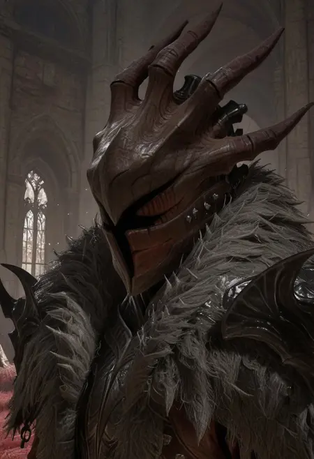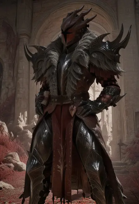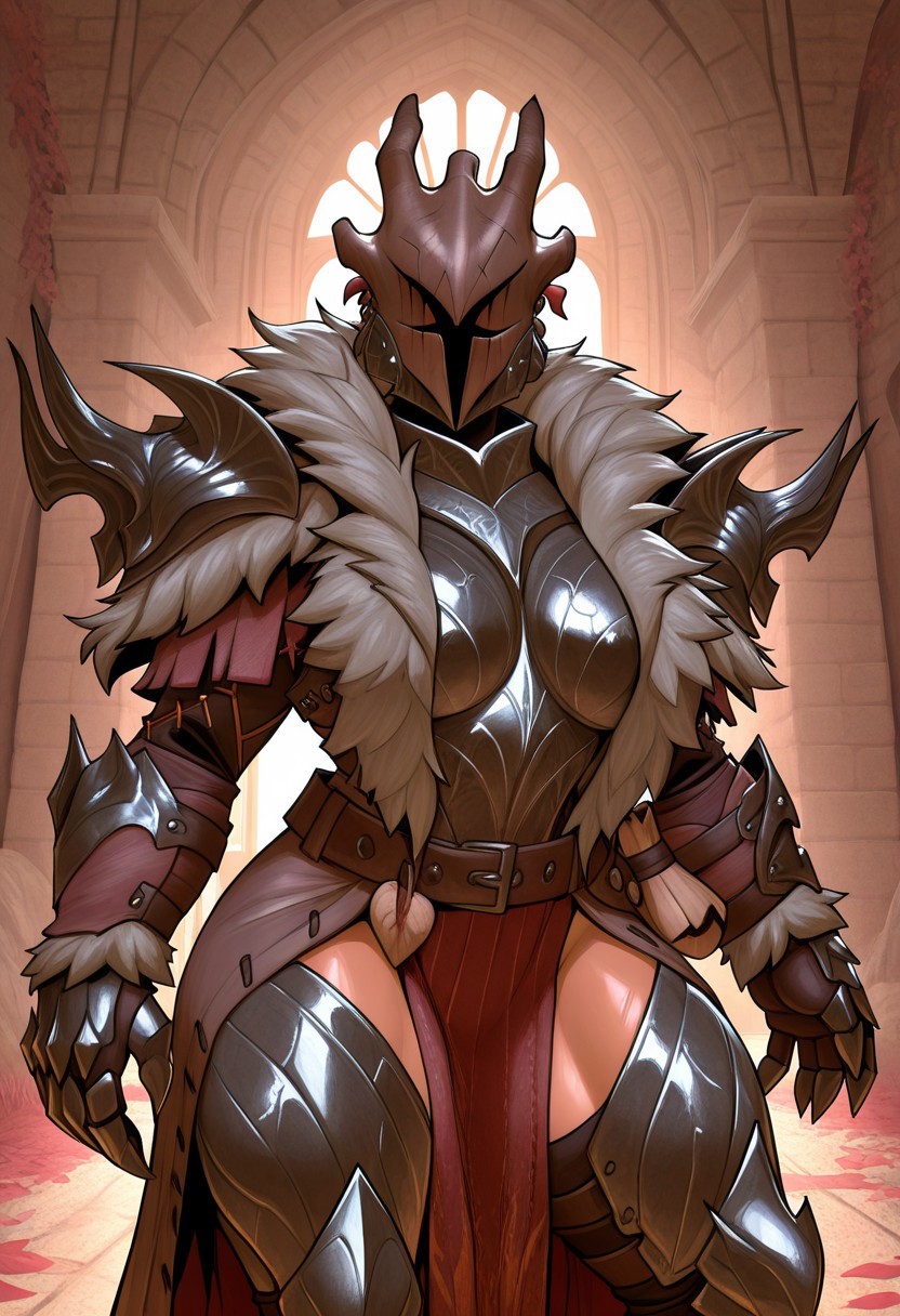 프롬프트: Gen.EngstromSDXL, 헬멧, 코트, 열린 코트, 모피 장식, 어깨 갑옷, 장갑, 정강이 보호대, 부츠
