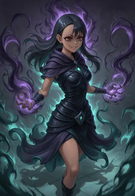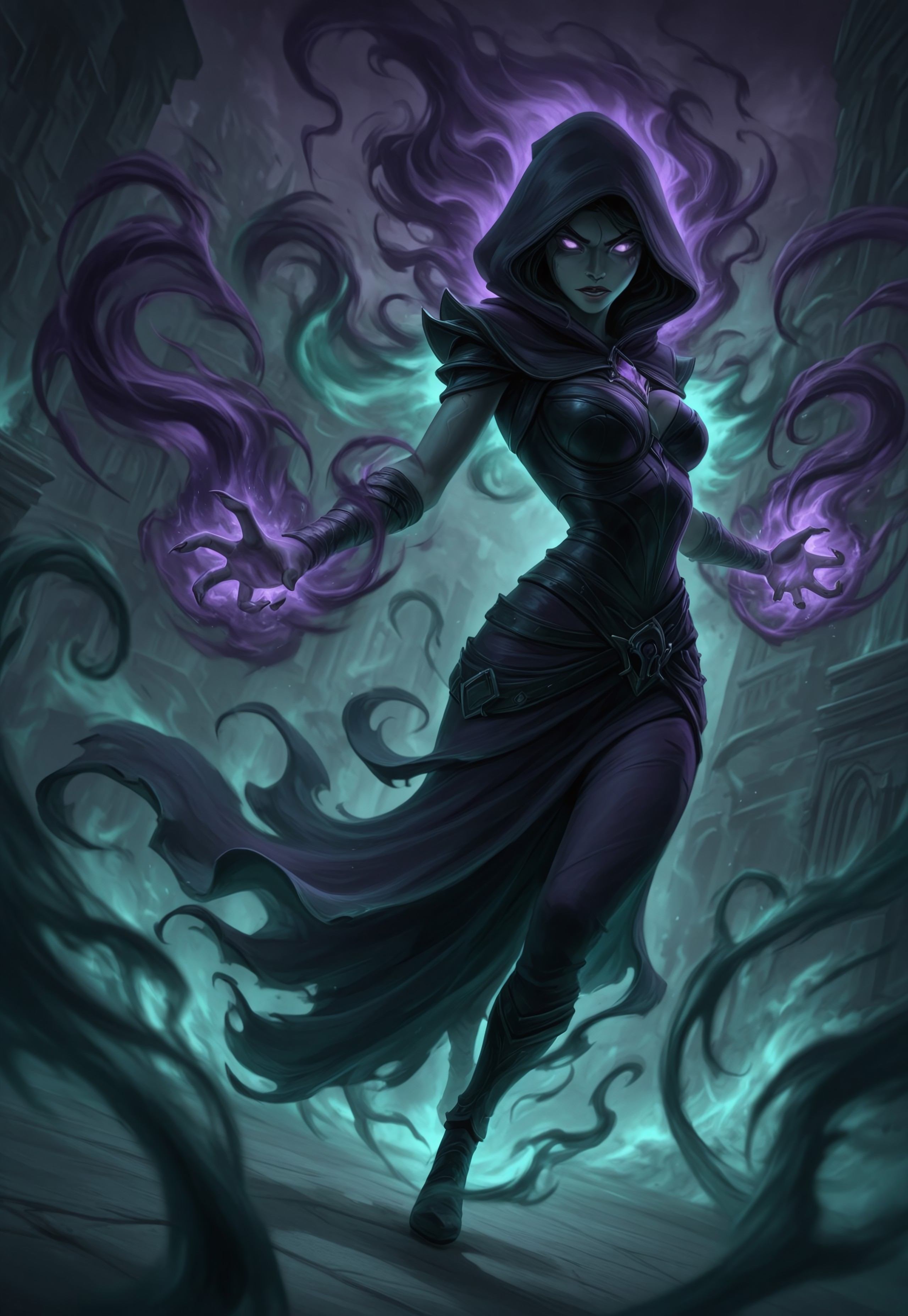 Darmagmb2, casting dark spell, shadow energy, corrupted aura, purple black magic, glowing,