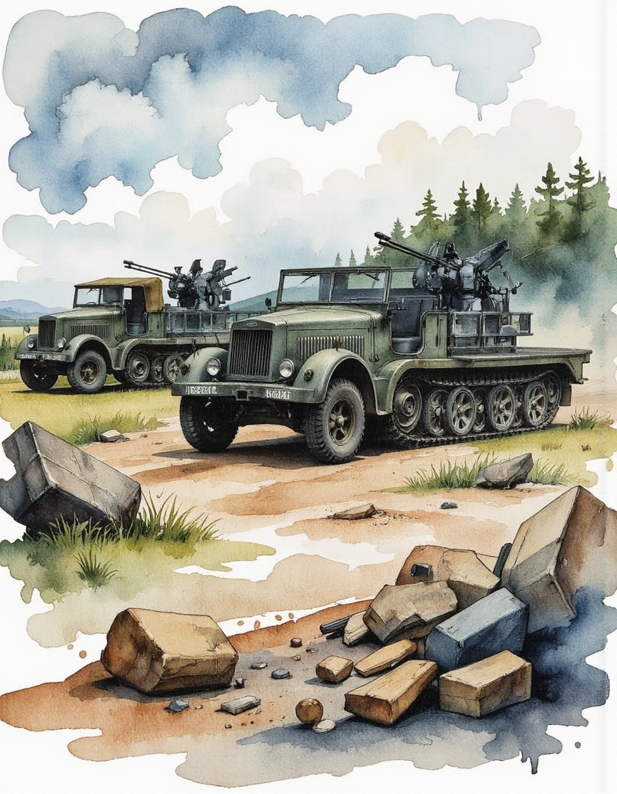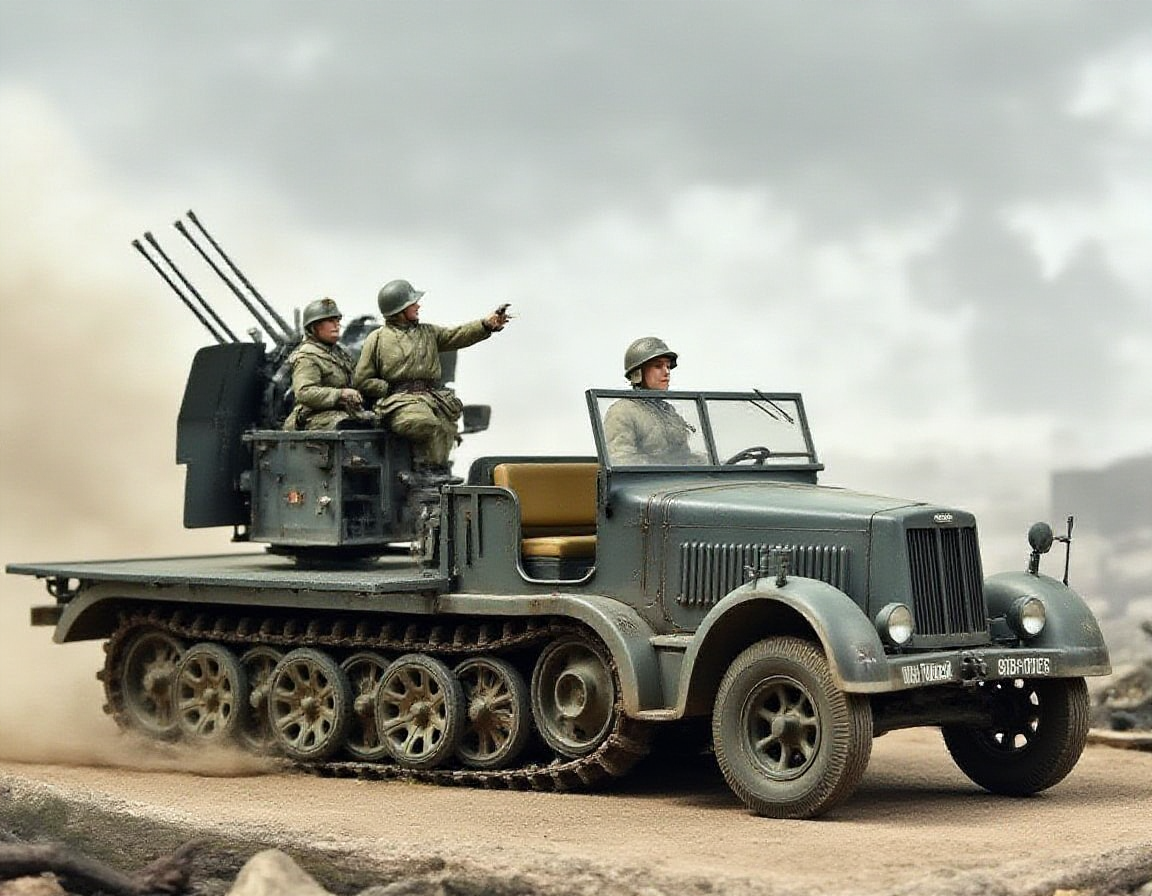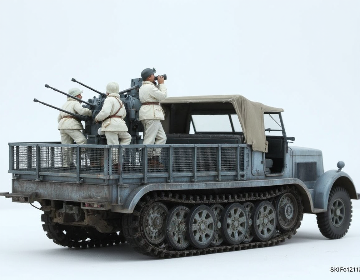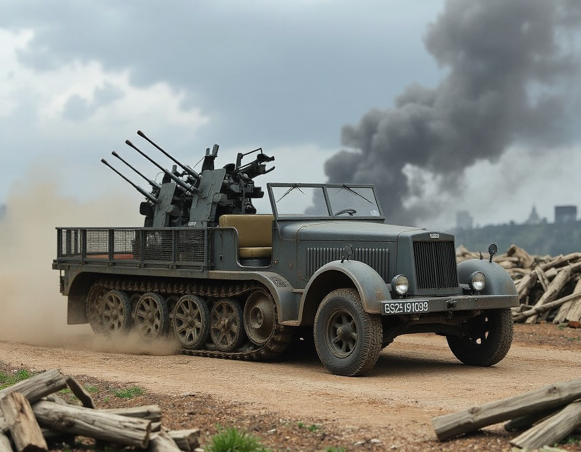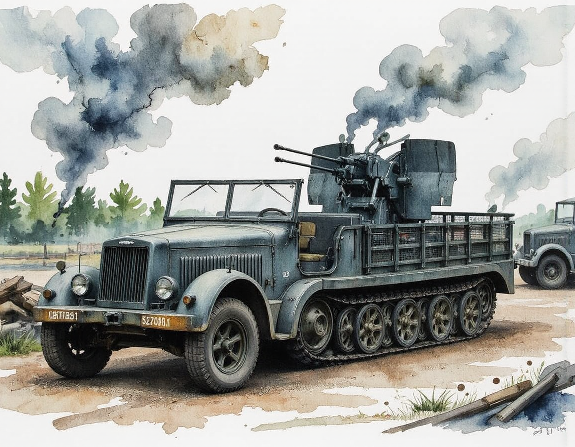 8トンハーフトラックSd.Kfz.7の車体後部に、88mm高射砲などの重火砲を牽引するために使用された4連装対空機関砲を搭載した自走式対空砲です。