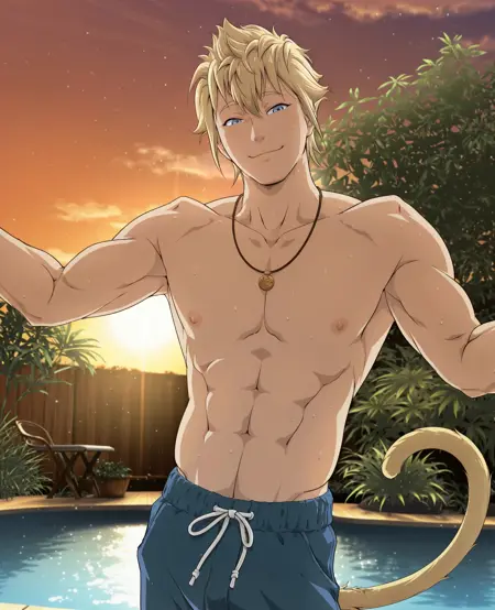 外观: 5unWkng,1个男孩,金色头发,短发,蓝眼睛,猴子尾巴,项链