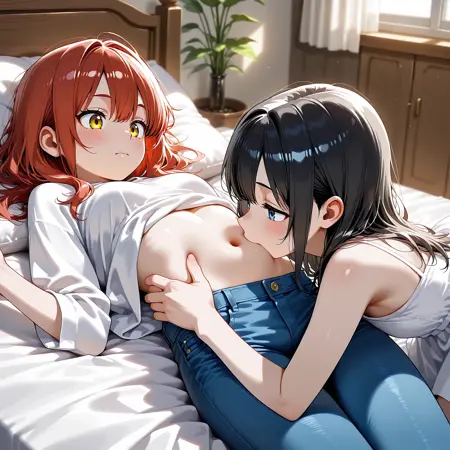 まず「2girls」+「お腹を噛む」で試してください。「お腹をなめる」や「お腹をキスする」も、トリガータグなしで動作することがあります。