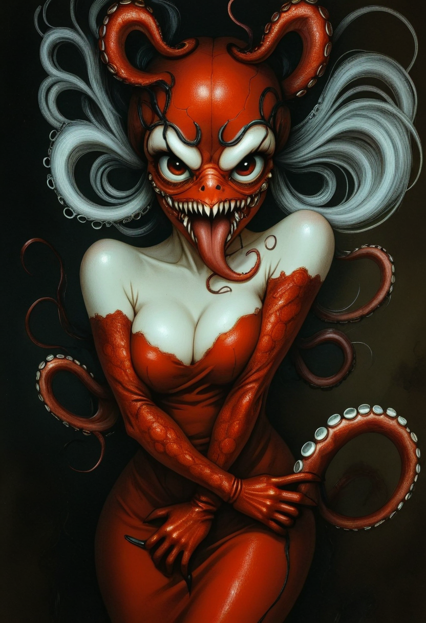There's a good chance you'll see headphones🎧, a heart❤️, snakes🐍, and tentacles🐙! If you don't want these elements, add them to the negative prompt!