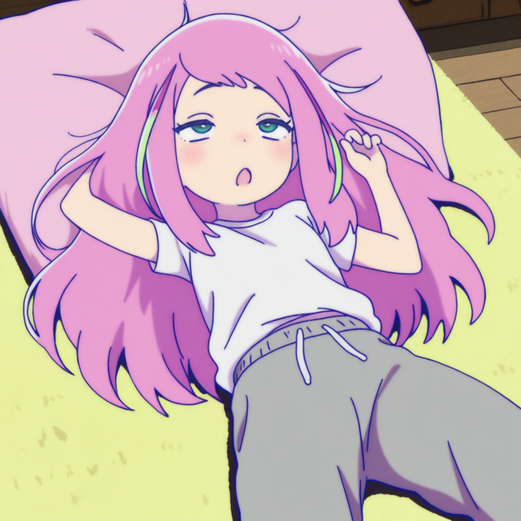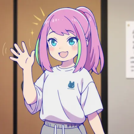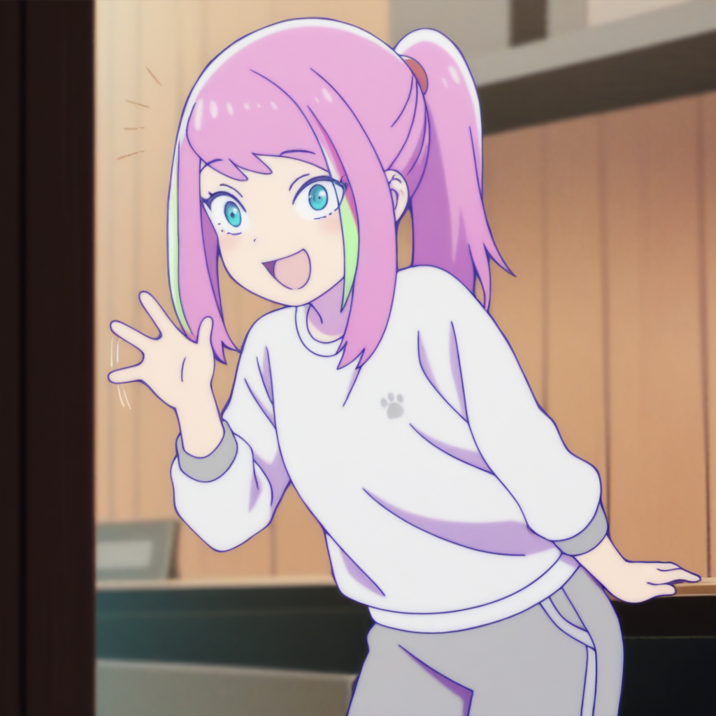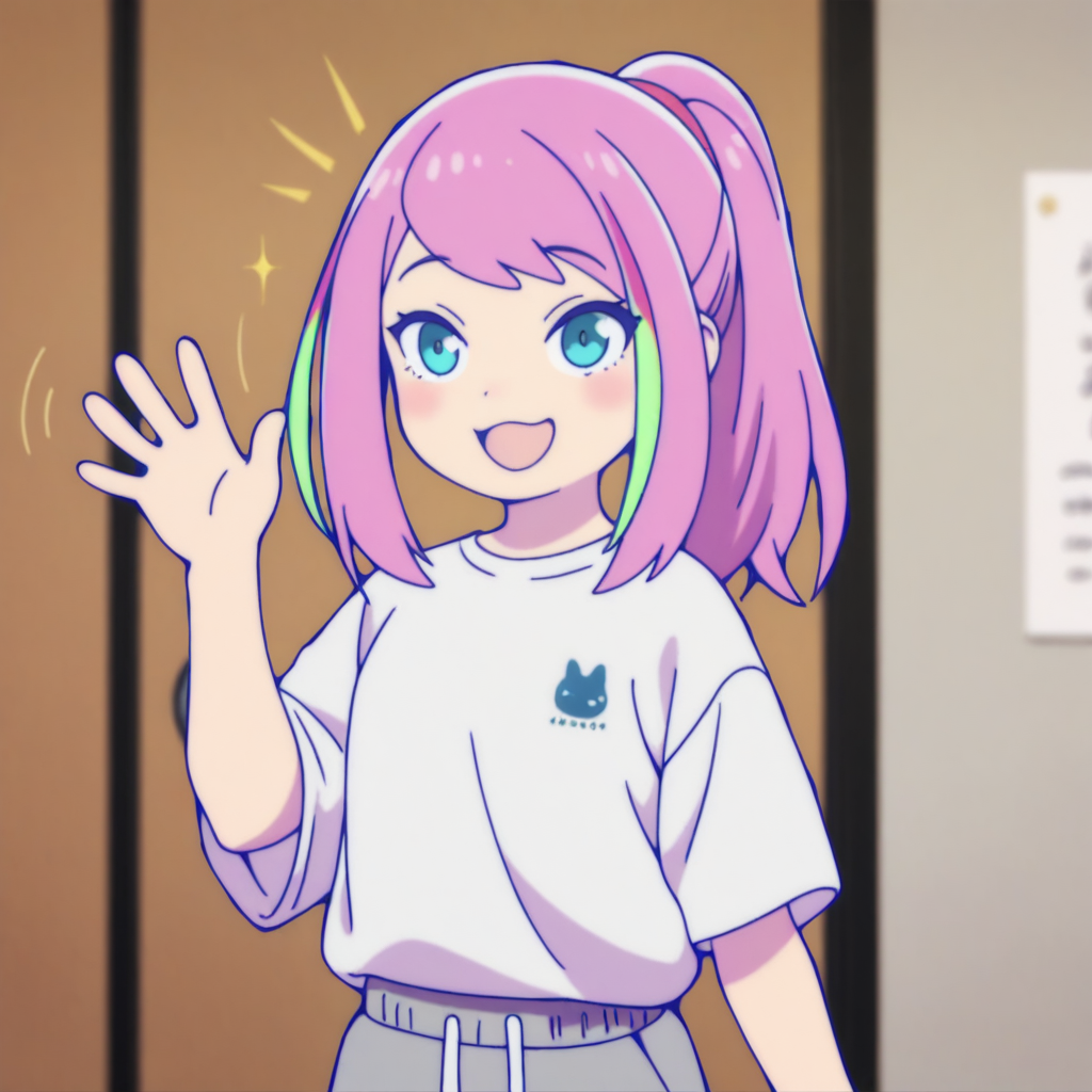 ny@@, 1girl, streaked hair, animal ears, pink hair, long hair, skirt, brown jacket, cat tail,