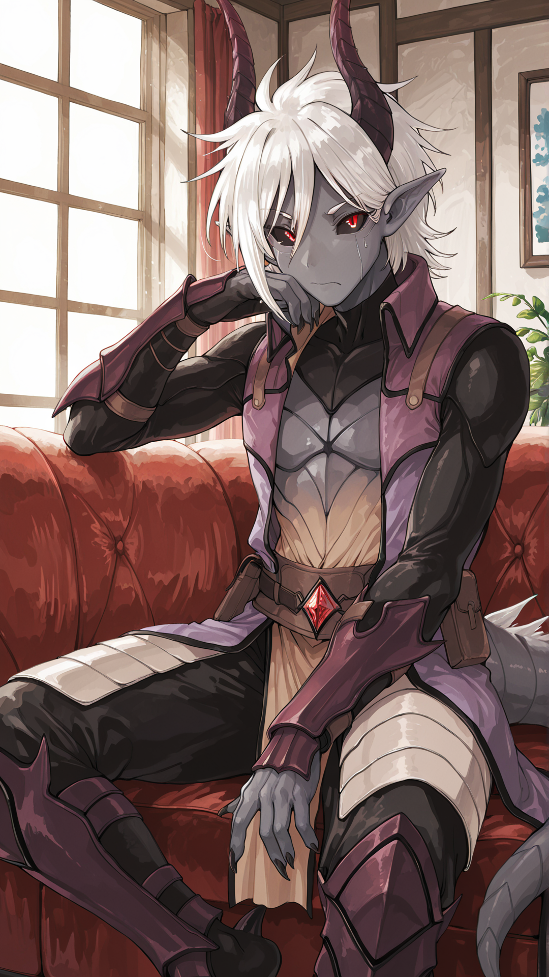 1girl、Louise、長髪、ドラゴン、獣化、角、顔の模様、フリル付きヘアバンド