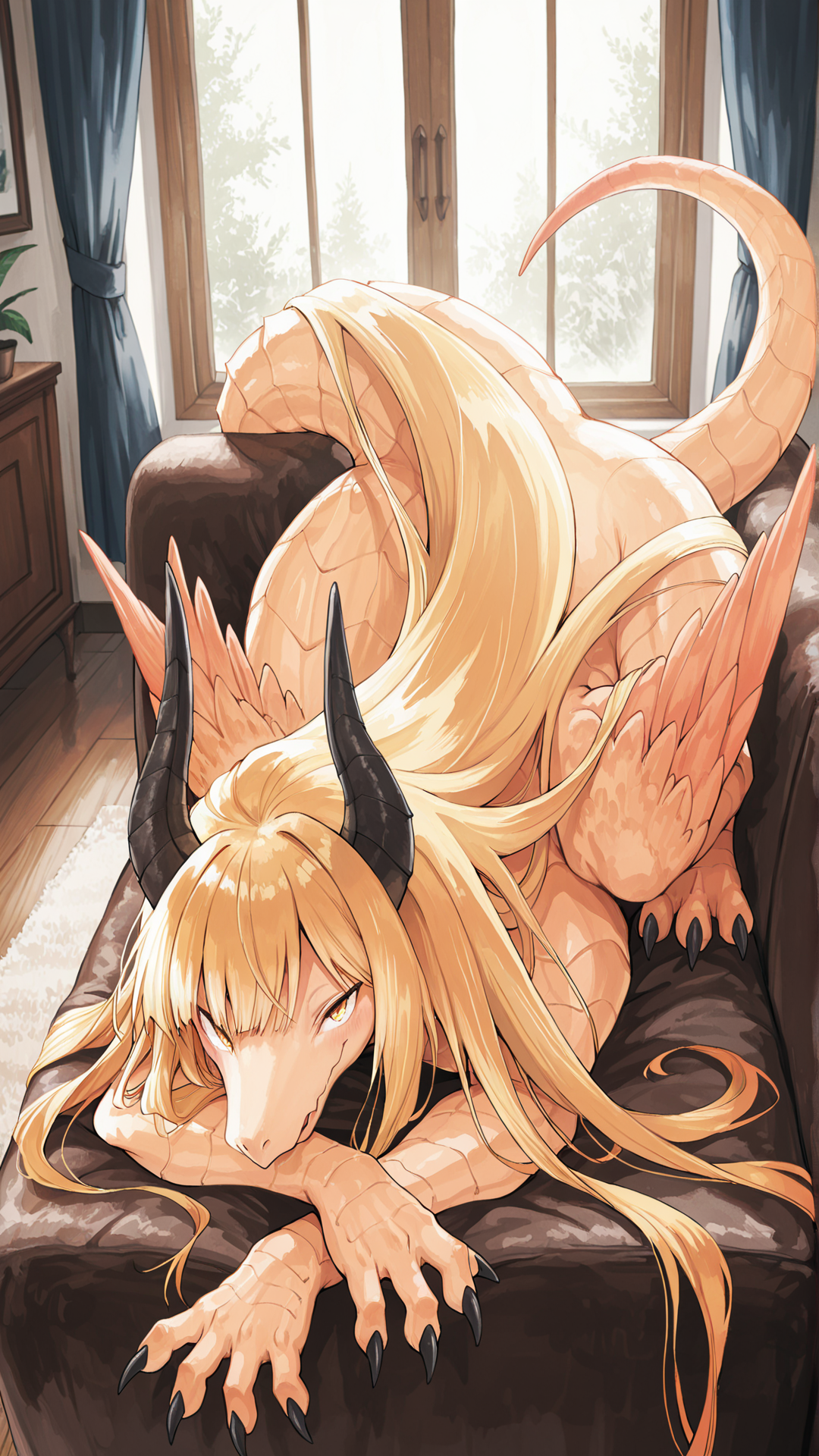 1girl、Ladon、長髪、角、ドラゴン、獣化