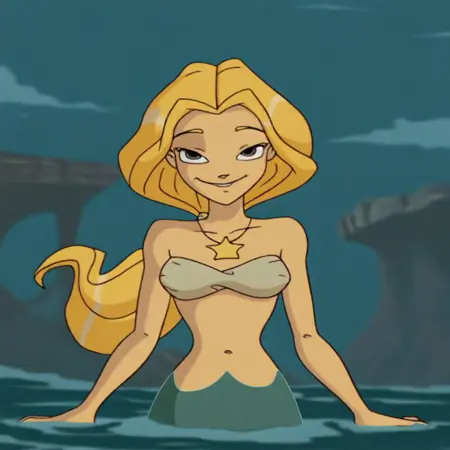 彼女の人間形態を使用したい場合、以下のプロンプトをご使用ください:Mira_the_siren、金色の髪、ポニーテール、灰色の瞳、中くらいの胸、スレンダーな体型、細い脚、まつ毛、笑顔、長い髪、ボリューム感、肩長のボブで広く明確な波型、ビーチに立つ、黄色い星形のネックレス、中くらいの胸、金色のまつ毛、金色の眉毛、カートーン、ヌード、セクシー、眠そうな目、全身が見えている、ピンクの乳首、脚が見えている、正面ビュー、フランコ・ジャパニーズ「franime」カートーンスタイル、セクシー、クリアで太い輪郭、スタイル化されたプロポーション、狡猾な笑みを浮かべる表情、装飾的なギリシャ風の装飾、素足、立っている、