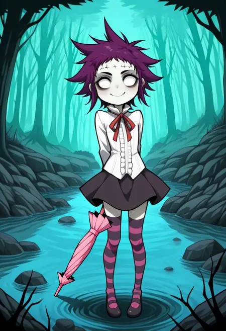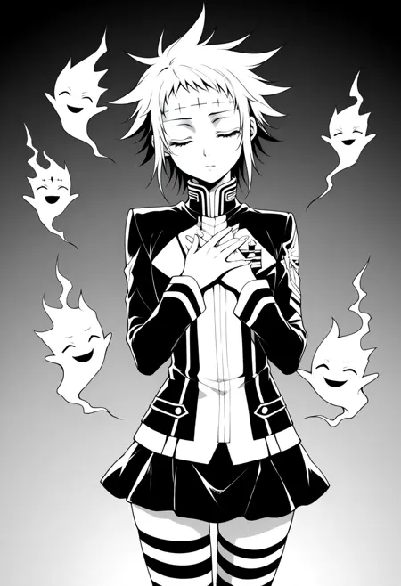 ロードはかわいくて怖い少女です。彼女はD.Gray-manの世界観にあるノア一家のメンバーです。このLoRAは、額に聖痕を持つノア形態のロード専用に作られました。